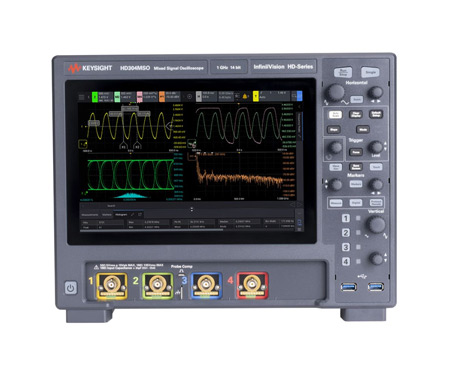 是德HD304MSO示波器提供14位ADC、4个模拟通道、100 Mpts存储器、1,300,000 wfms/s更新速率和10.1英寸电容式触摸屏。